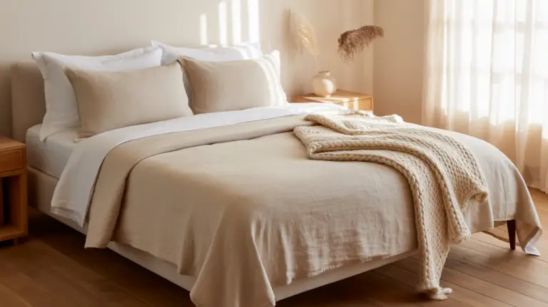| Warm Taupe | Natural Wood | Soft & Inviting |