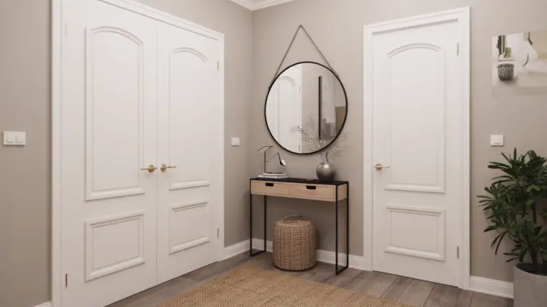 | Sconces | Beside mirror | Functional, flattering light |