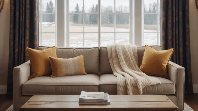 Window treatments also play a vital role in setting the tone. Heavy velvet curtains in a rich burgundy or deep neutral shade will frame your windows beautifully, adding both style and privacy while contributing to the room’s luxurious feel.